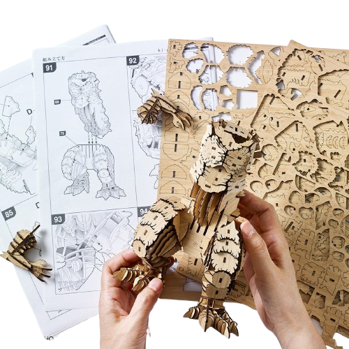 São 398 peças cortadas a laser que se encaixam—sem cola nem ferramentas—para montar uma exibição de 20 cm de altura e 31 cm de comprimento com escamas e cauda que parecem ganhar vida nesse material natural.